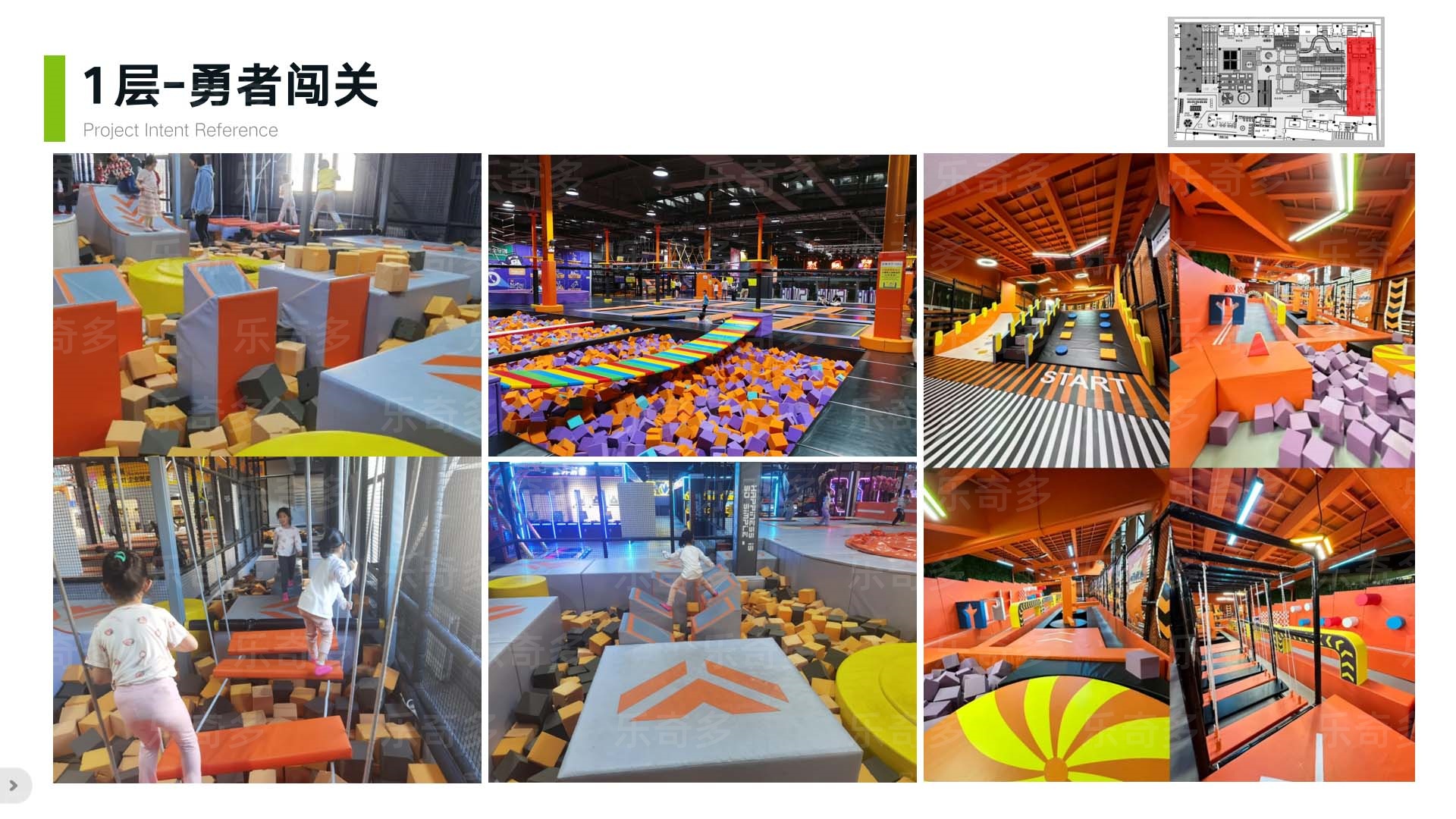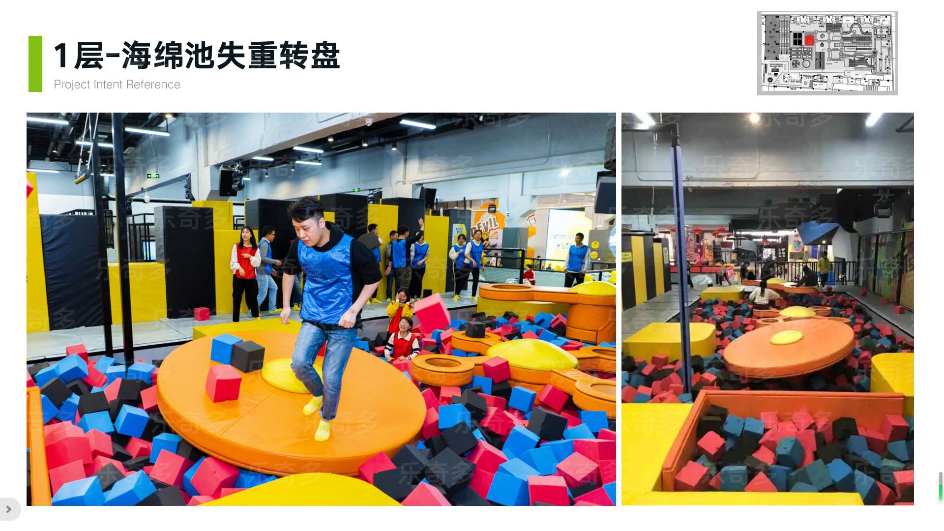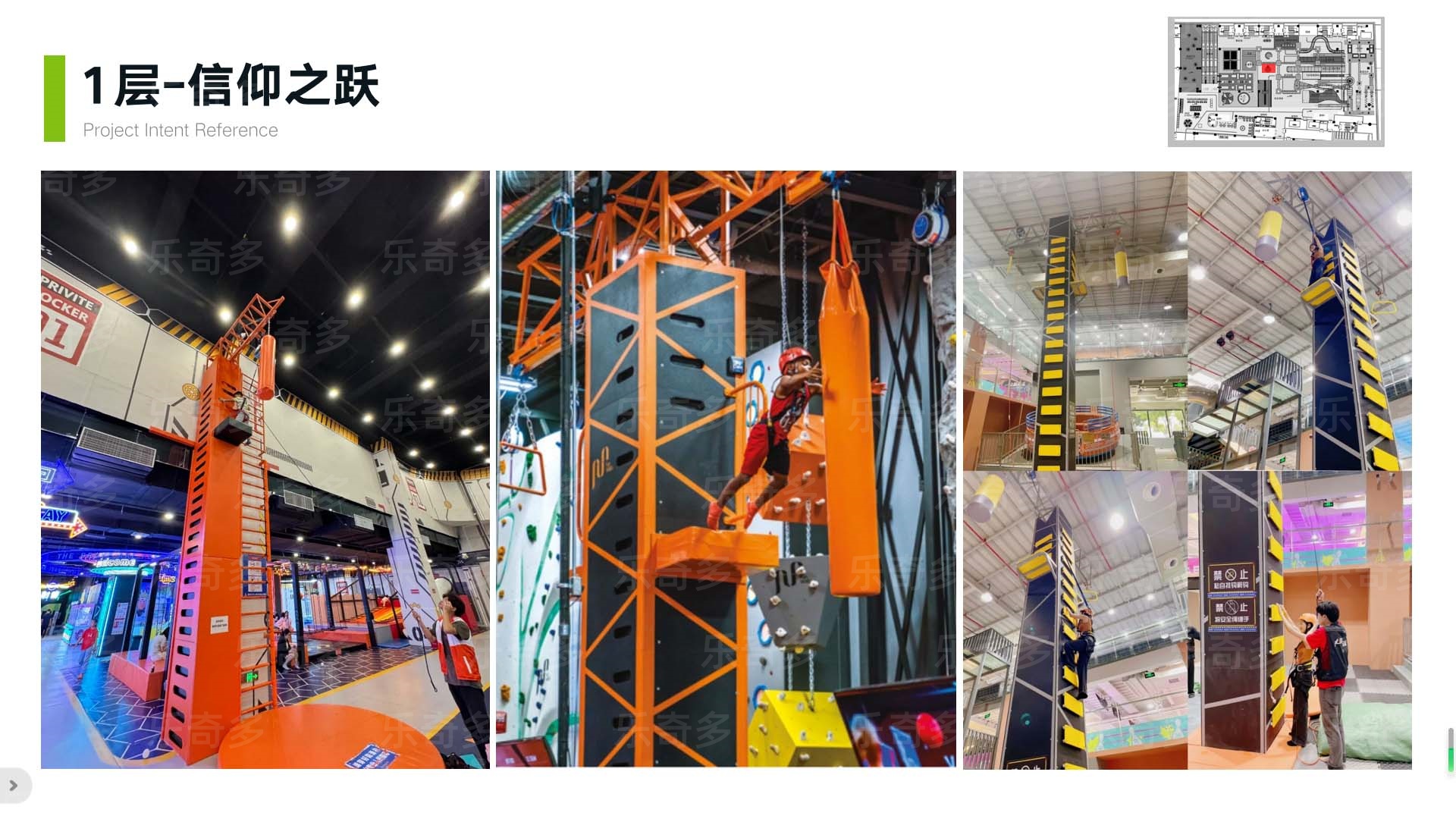項目玩法:造型打卡點、繞柱螺旋樓梯、牽引球、高空項目樓梯、二三層跳樓機、不銹鋼滑梯、魔方攀巖、趣味攀巖、旱雪滑梯快速通道、旱雪滑梯、360自行車、桁架闖關(guān)、激光密室、海綿池對抗、鏡子迷宮等。